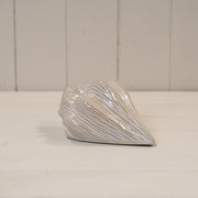 Glazed Ceramic Shell Ornament with Textured Detail.