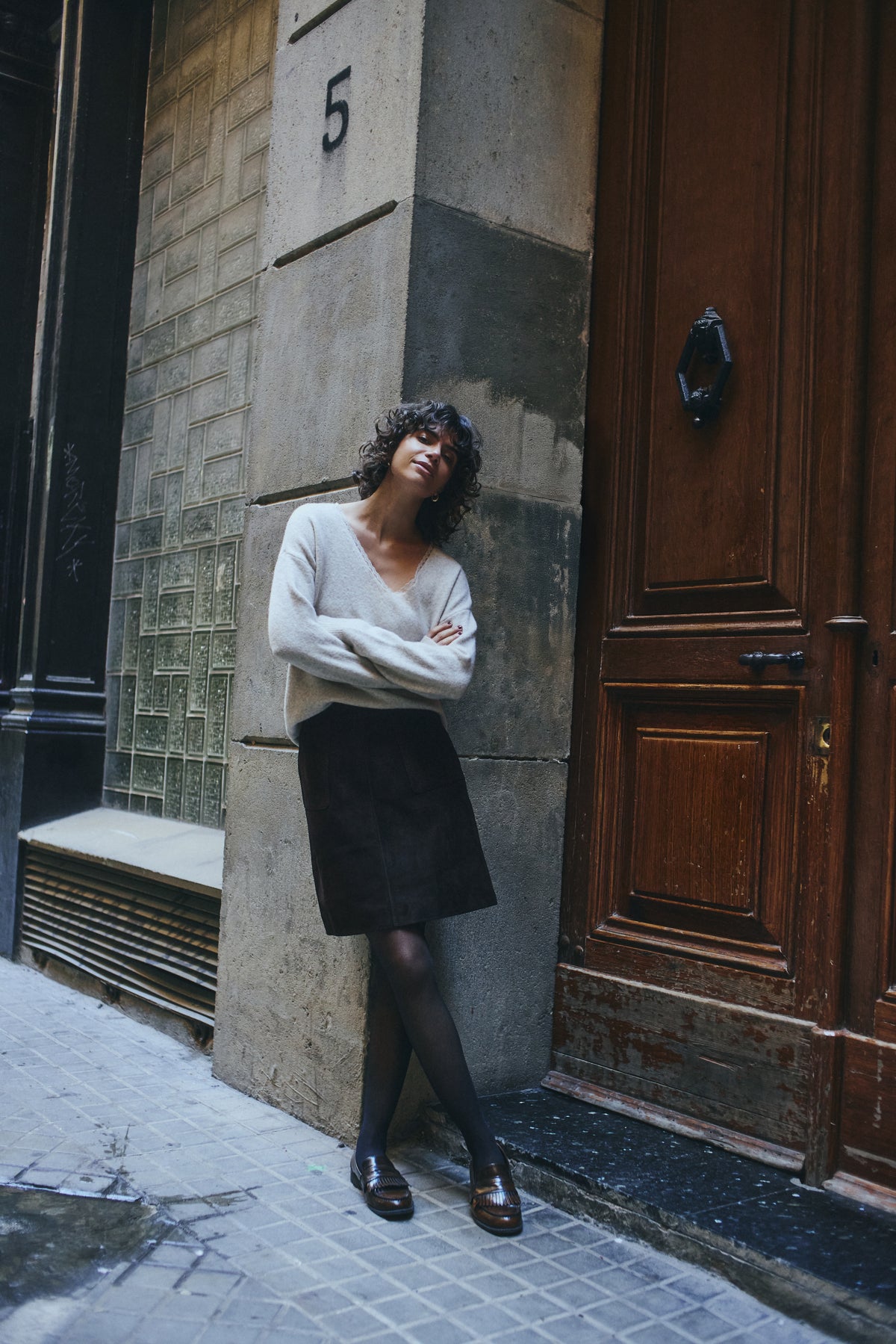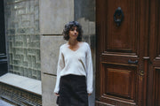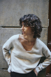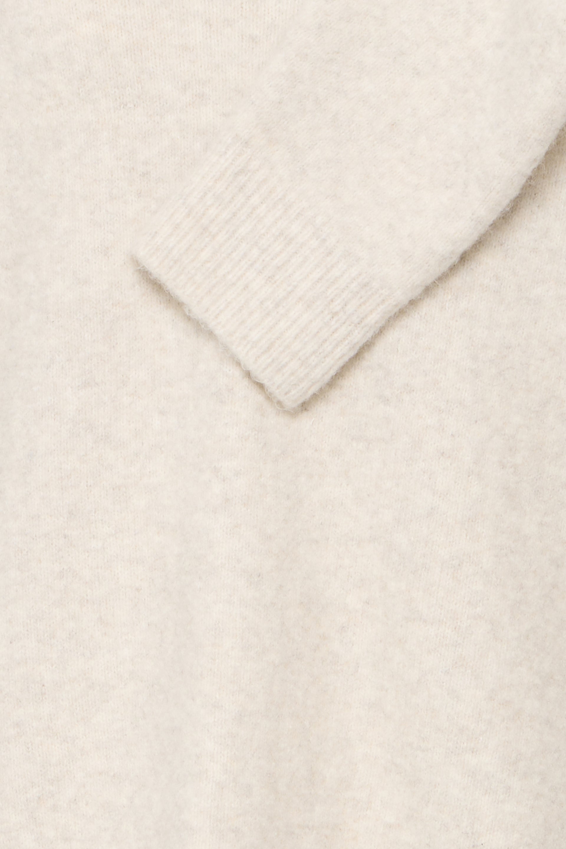 Indulge in the luxurious knit of the Fransa ELLEN V-Neck Jumper. The oatmeal melange color provides a subtle touch of warmth, while the wool blend adds a soft and cozy feel. Perfect for a sophisticated and stylish look.