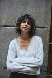 Fransa ELLEN V-Neck Jumper - Oatmeal Melange
