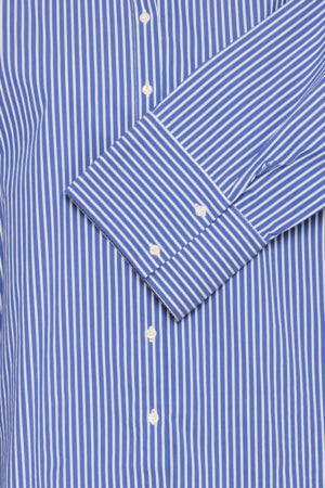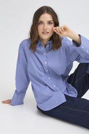 Experience comfort and sophistication with this Long Sleeve Fransa's Shirt. Its elegant button-up design complements the wide sleeves and stripy pattern in beautiful Night Sky colour, making it effortlessly stylish. Stay classy and confident with this must-have addition to your wardrobe.