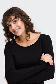 Experience effortless style with our Fransa ladies long sleeve t-shirt in classic black. Its comfortable and versatile design is perfect for any occasion, making it a wardrobe essential. Elevate your look with this must-have piece today!