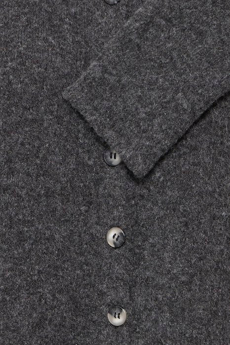 Indulge in luxurious warmth with Fransa's NOAH Cardigan. Knitted from premium materials in a sophisticated charcoal grey melange hue, this short-length cardigan is perfect for a cozy yet elegant look.