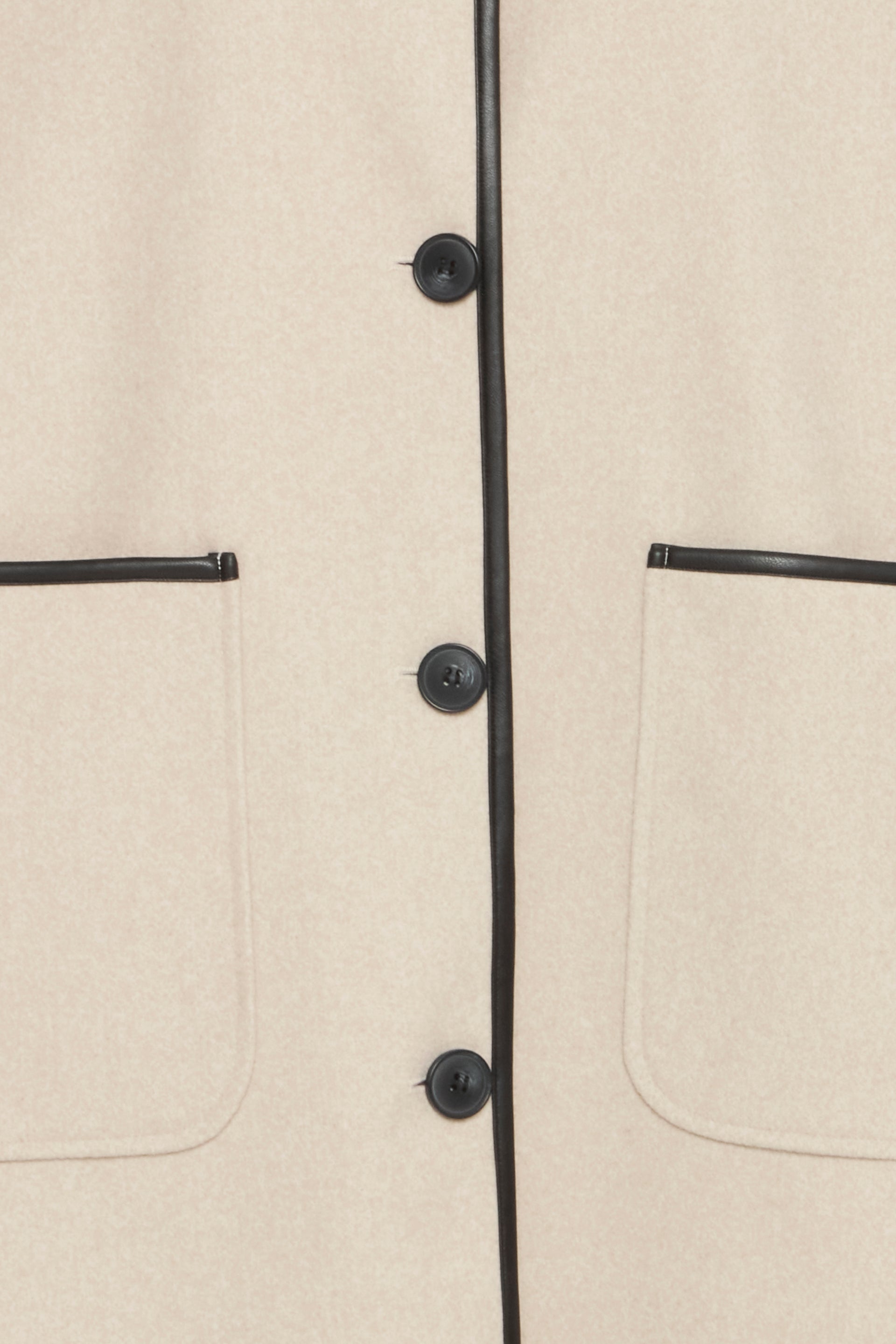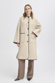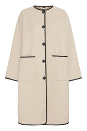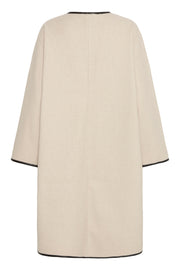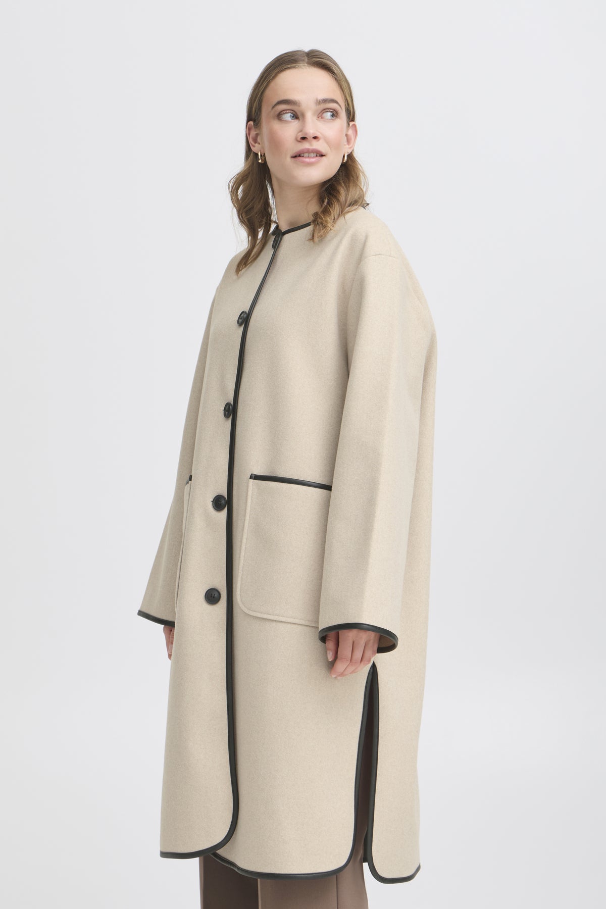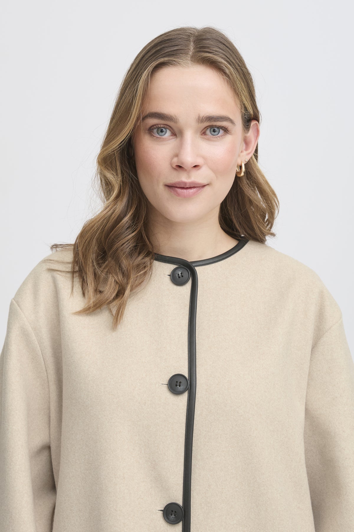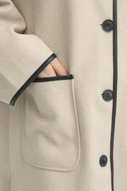 Stay warm and stylish this winter with our Fransa Outerwear Coat in a limestone melange colour. Classy and chic, this coat features button up design finished up with thin black lines over the end of front pockets and sleeves for a timeless look. Defy the cold with this coat that is as functional as it is fashionable.
