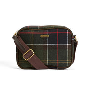 Camera style cross body bag with adjustable shoulder strap trimmed in faux leather. Barbour tartan outer with waxed cotton trim. Zipped closure & inner zipped security pocket.