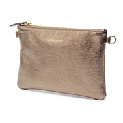 Fully customisable with one of our co-ordinated patterned wristlets, the pouch is hand finished, made from premium grained genuine leather by artisans in Italy and features subtle gold fittings.