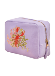 This Lobster Buddies Make Up Bag in lavender is the perfect practical buy. Bold, fun and novelty! Where corals meet lobster buddies, this velvet embroidered make up bag is fantastic for feeling glamourous everyday. Sure to keep your vanity table looking glam, this super roomy wash bag has plenty of space for all your cosmetic essentials. Comes with complimentary packaging, making this the perfect gift for your loved one or to treat yourself.