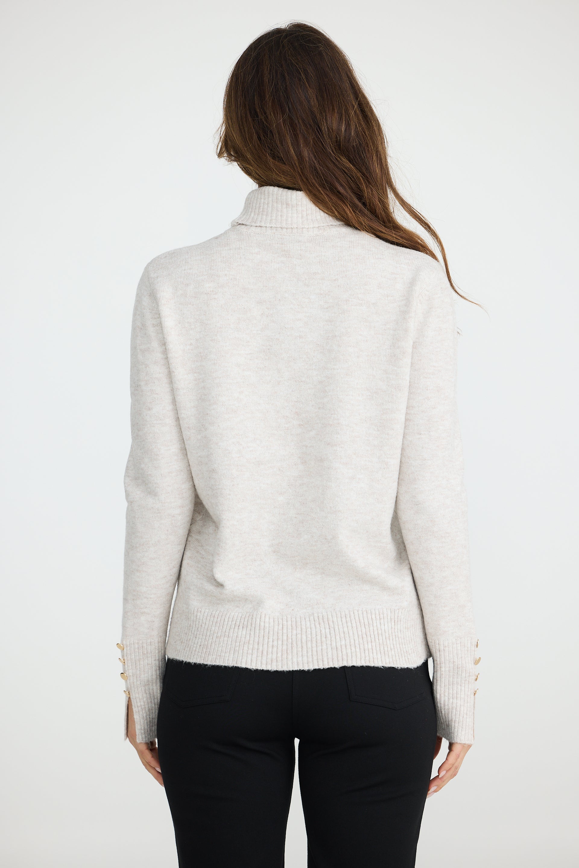 The Brave & True Pilot Knit in Oat Marle features a versatile neck that can be folded over or scrunched up for a stylish look. You can also turn the neck inside for a chic, polished finish. Accented with elegant gold-finish buttons, this jumper combines comfort with a touch of sophistication, perfect for elevating your everyday wardrobe.