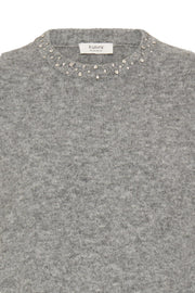 BYOMEA Short Sleeved Jumper With Rhine Stones - Grey