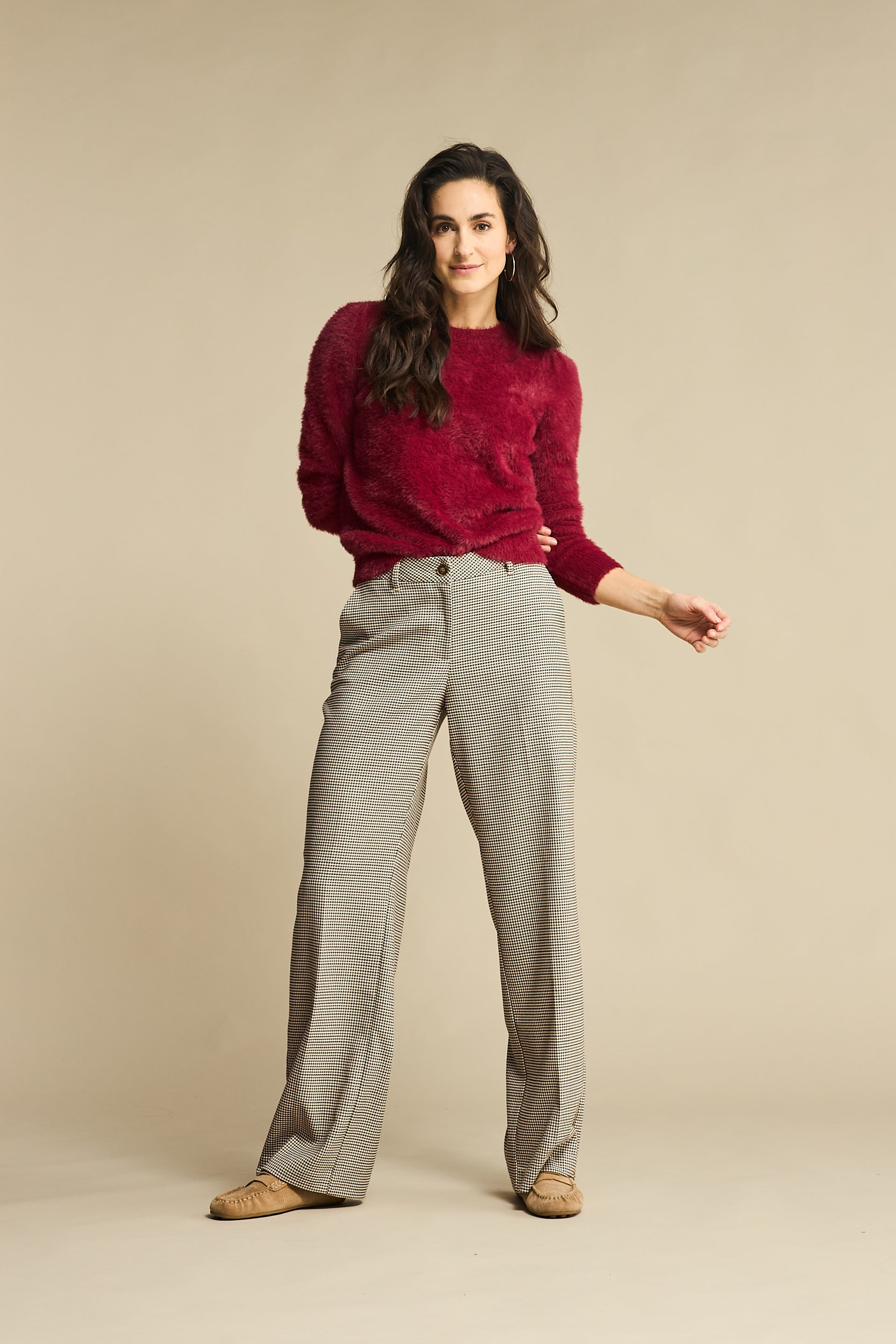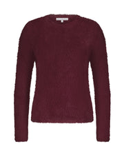 The Red Button Fuzzy Puff Sleeve Jumper in Ruby combines cozy softness with stylish puff sleeves for a chic, comfortable look. Its vibrant ruby colour adds a pop of warmth to any outfit, perfect for cooler days.