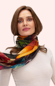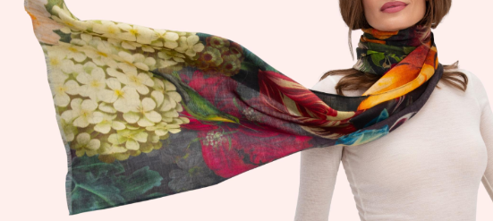 Wrap yourself in luxury with our Powder Winter Iris Wool Wrap Scarf. This large scarf will not only keep you warm, but also elevate your style with its elegant pattern. Designed for the sophisticated and exclusive, this scarf is a must-have for the colder months.