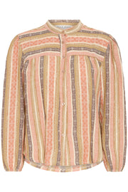 Pulz Jeans NILA Long Sleeve Shirt - Coral Beige Stripe