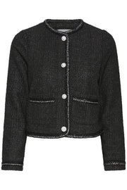 This B Young Panthea Short Jacket in Meteorite black offers a sleek, knitted design that brings an elegant touch to your wardrobe. Its refined style pairs perfectly with the matching skirt, creating a coordinated and polished look for any occasion. Comfortable and chic, this jacket is a versatile addition that elevates your outfit effortlessly.