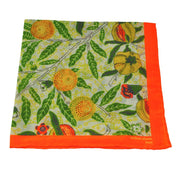 William Morris Fruits Silk Cotton Blend Pocket Square Handkerchief. A luxury zesty hanky with fruits & flowers in shades of green, orange & lemon yellow. Great for day or evening wear. A fantastic hanky with rolled hems fabricated from top quality materials. Size: 40cm x 40cm 15.5" x 15.5". Fabric: 70% Cotton 30% Silk.