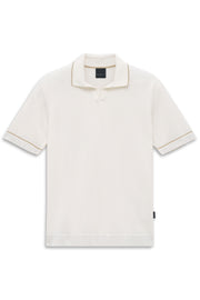 Crafted from 100% cotton, the fabric is soft, breathable and comfortable against the skin, making it ideal for warmer days. The open polo neckline creates a relaxed silhouette, while the minimalist design and discreet branding give it a polished appearance.