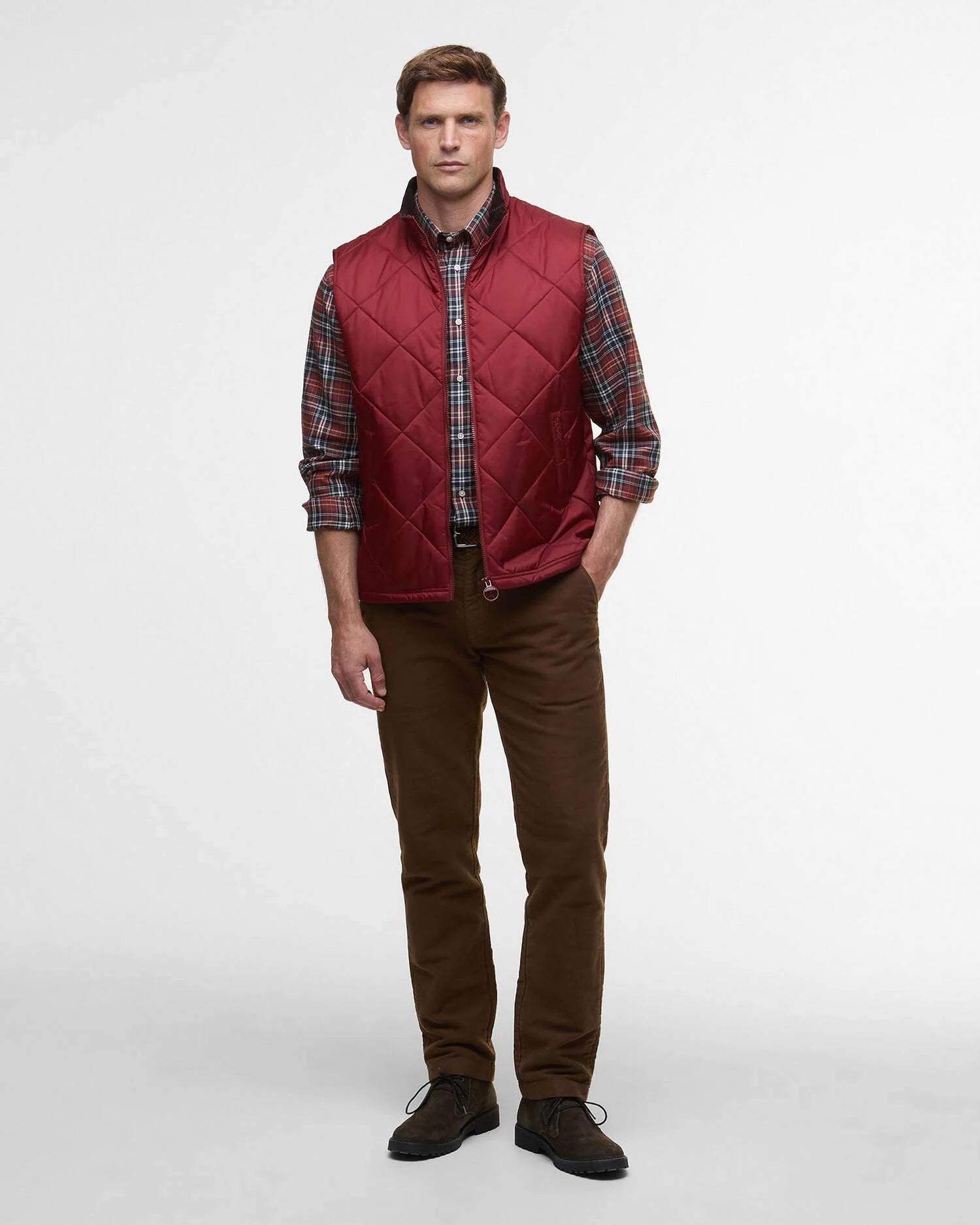 Cut to a relaxed fit with room to accommodate layers, this versatile gilet is crafted with a large-scale box-quilted outer featuring welt pockets, a two-way front zip and a stand collar lined with heavyweight needlecord for softness against the skin. A leather patch trims the rear neck and a large-scale version of Barbour's iconic tartan adorns the lining.