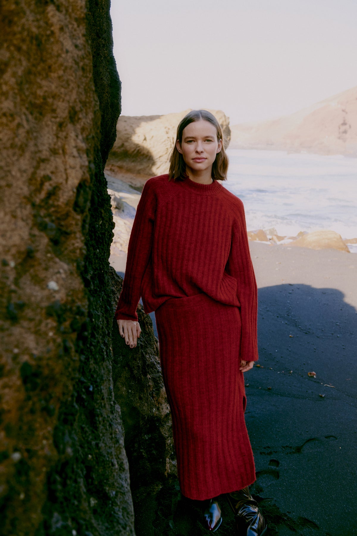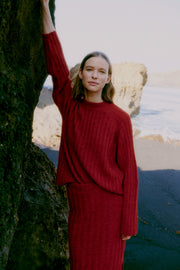 Indulge in luxury with the B Young MARIANNE jumper in striking Barbados Cherry. The rich colour and ribbed texture add depth and sophistication, while the lightweight fabric allows for year-round wear.