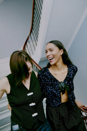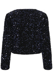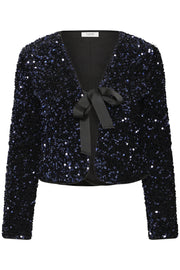 B Young Paillet V-Neck Bow Jacket - Evening Blue Sequin Mix