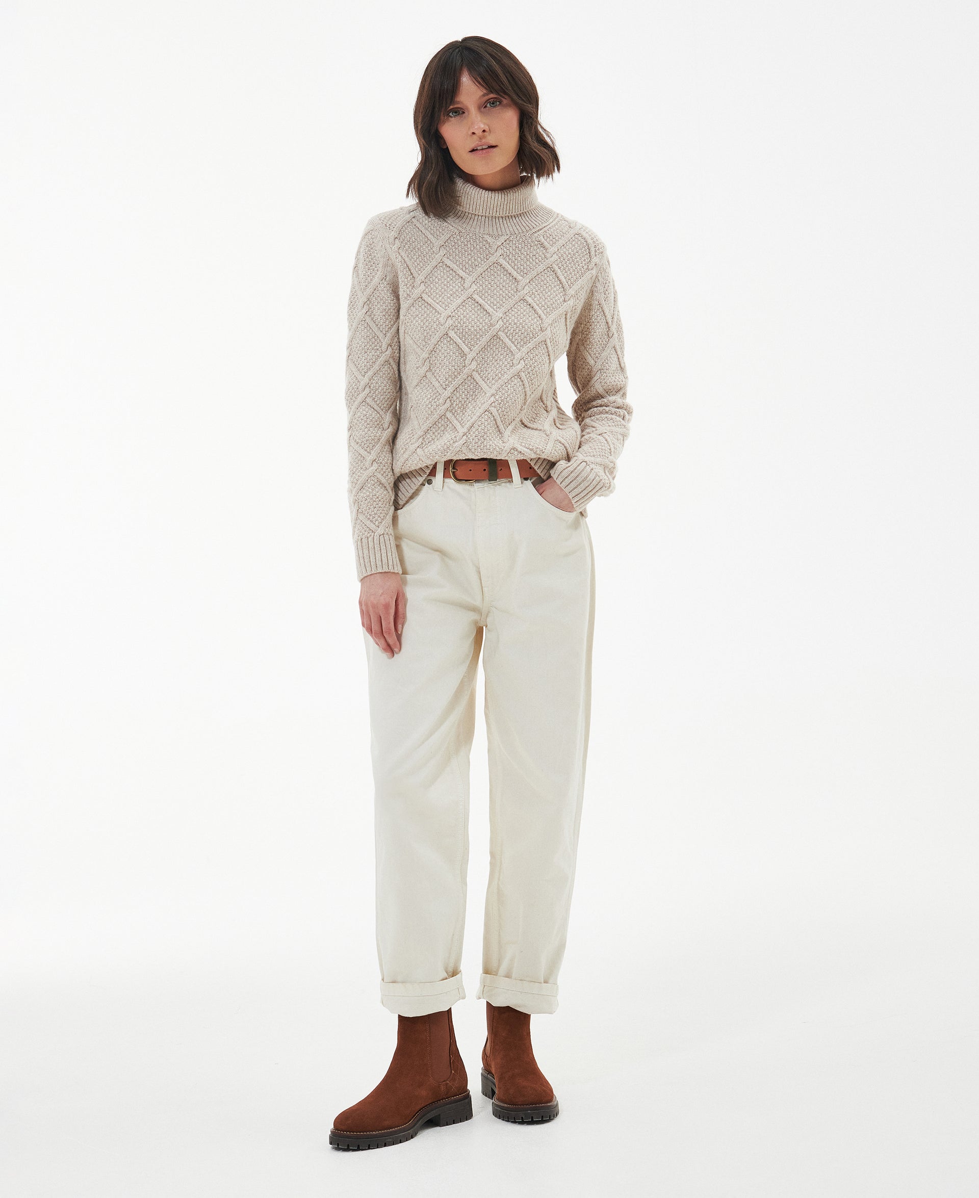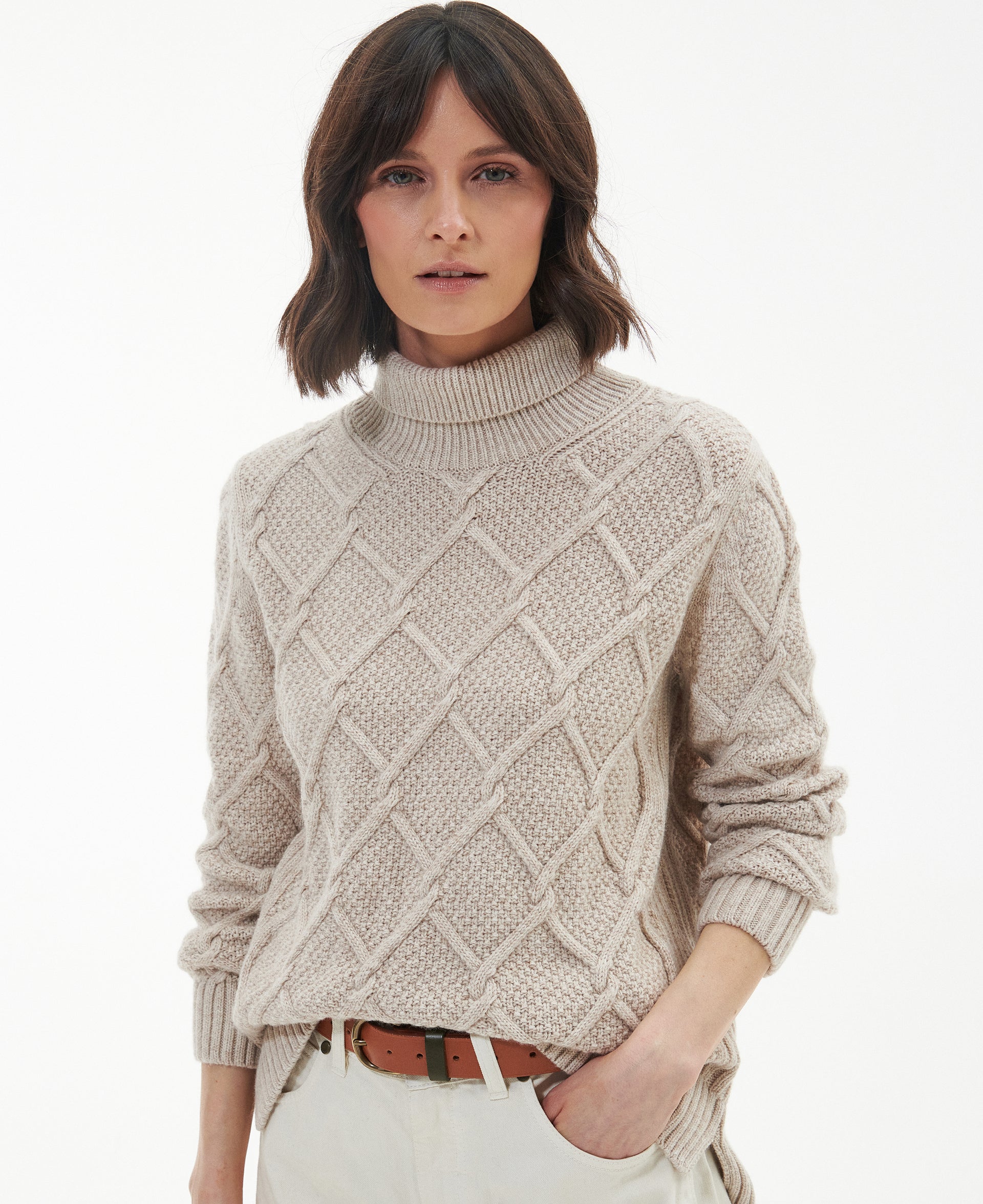 Barbour Burne Roll Neck Knitted Jumper - Oatmeal