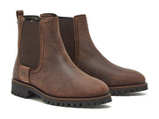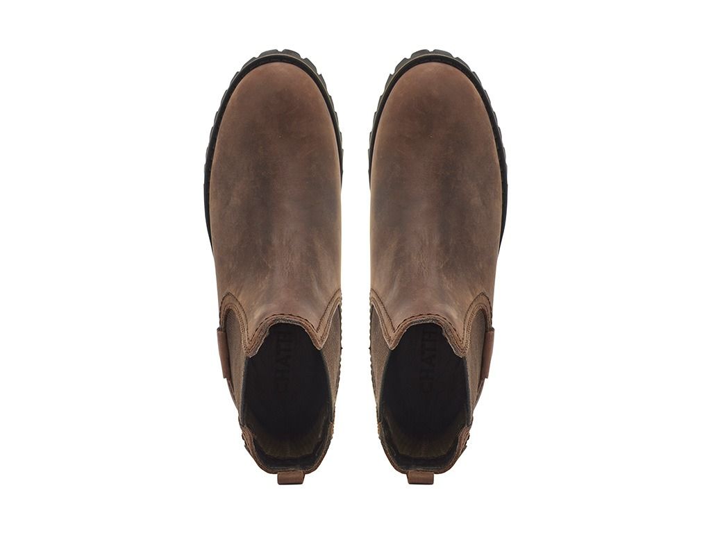 Expertly-crafted from waterproof premium leather in rich chocolate brown, these fully waterproof Chelsea boots have elastic side panels in dark brown, Chatham logo detail and an easy pull-on back tab. They have a 100% waterproof Sympatex® breathable microfibre lining, our sole spring poron performance cushioning, which is anti-bacterial and offers maximum comfort and shock absorption, and they sit on a durable cleated Vibram® rubber sole.