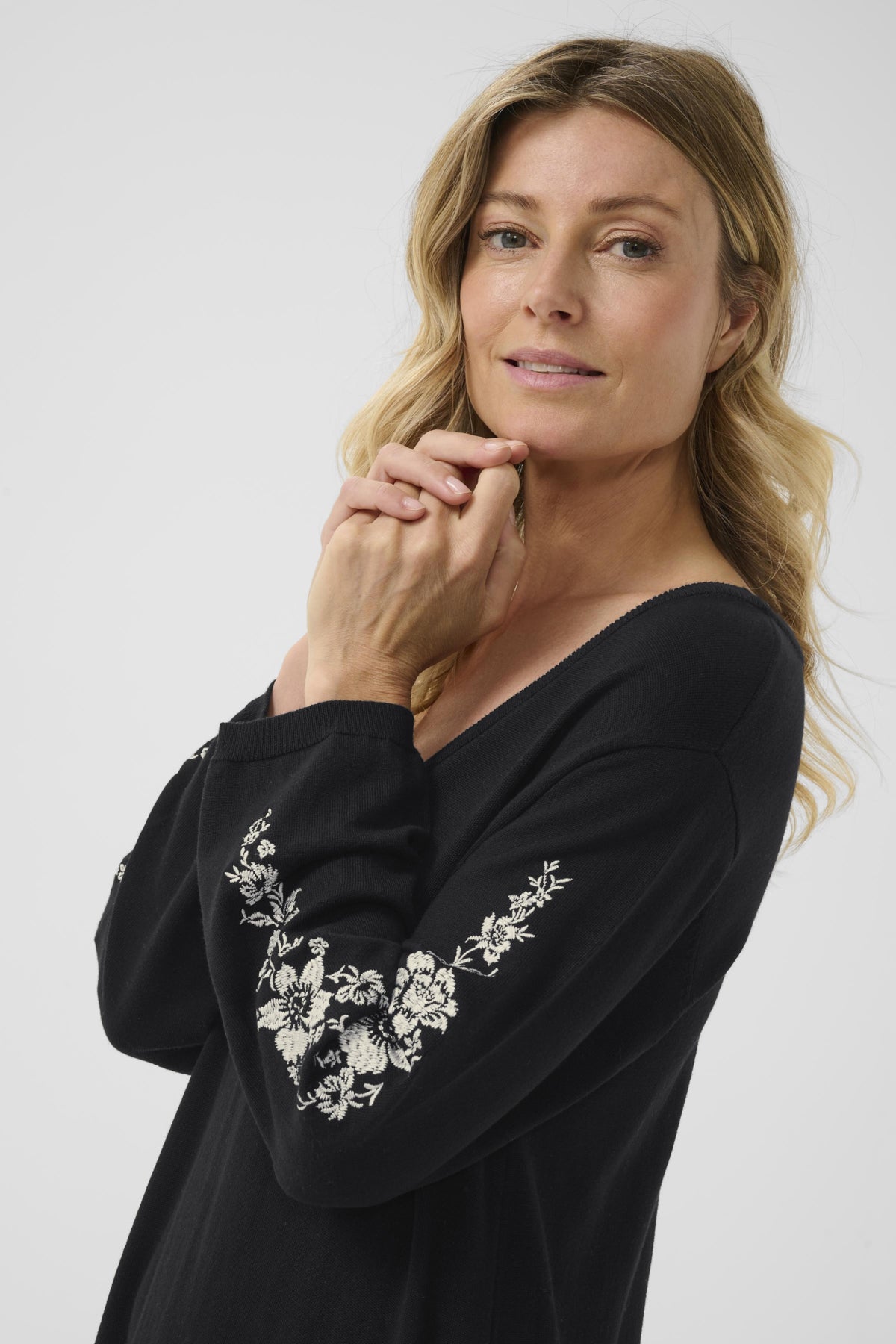 Cream Villea Embroidery Knitted Dress - Pitch Black