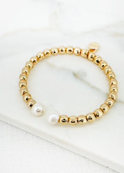 Gold beaded bangle with pearl detail