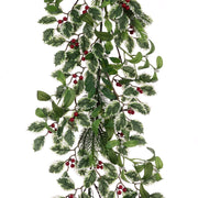 Add festive charm to your home with the FloralSilk Holly & Mistletoe Garland. Featuring lifelike holly and mistletoe leaves, it brings a natural holiday feel while being easy to hang and reuse year after year. Perfect for mantels, doorways, or staircases.