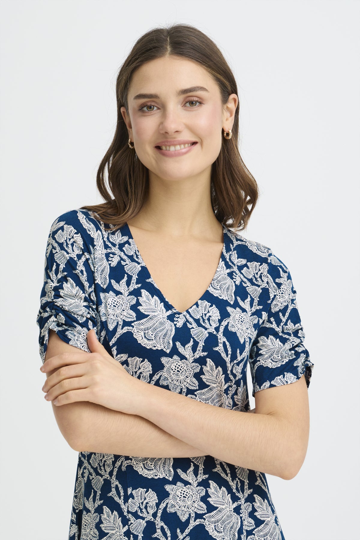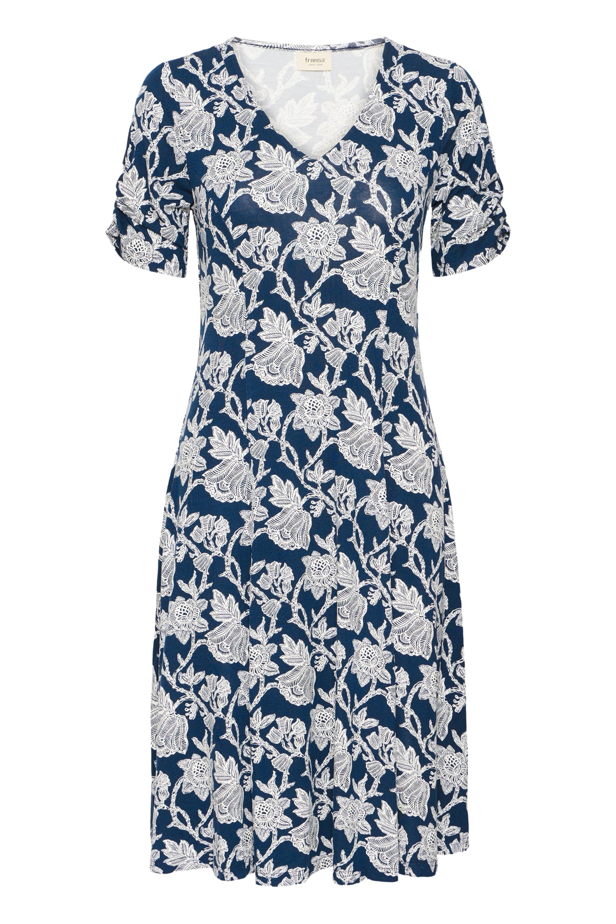 The Fransa AMY Dress – Summer Bloom Navy Print is a feminine, easy-to-wear piece designed with comfort and versatility in mind.