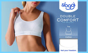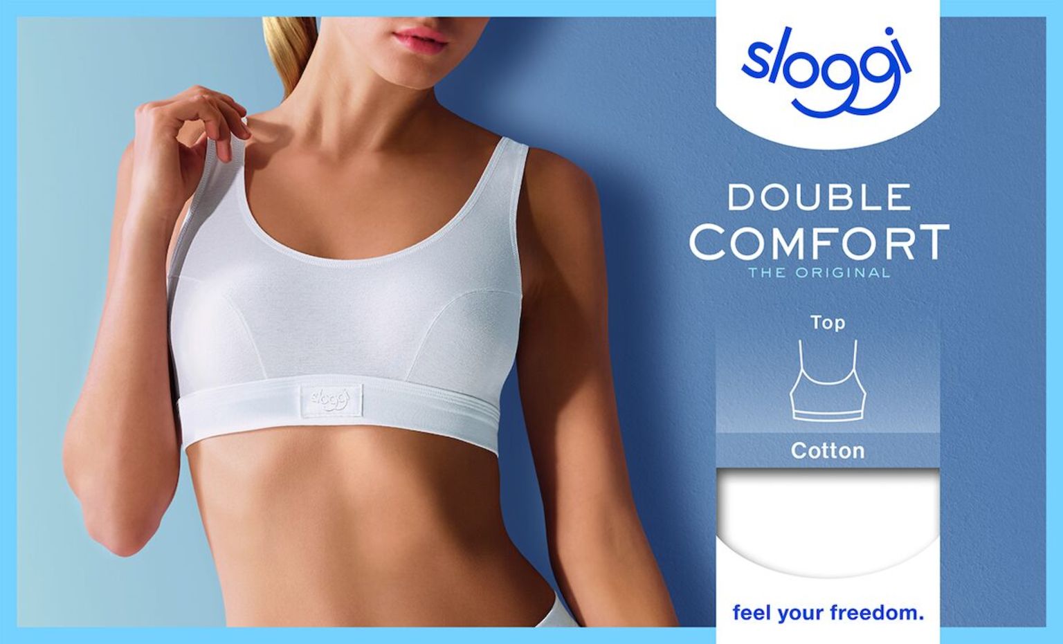 The Sloggi double comfort white top is super soft with a stretchy shape. The seamless tubular waist creates a simple silhouette with smooth lines. It's non-wired to enhance your natural shape, with a supportive under-band that sits flat against the body for effortless wear.
