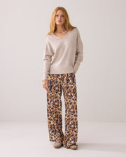 A classic oversized wool lightweight jumper in soft ivory. It’s warm, breathable, and comfortable for everyday wear. The relaxed fit makes it easy to layer and style with anything in your wardrobe.