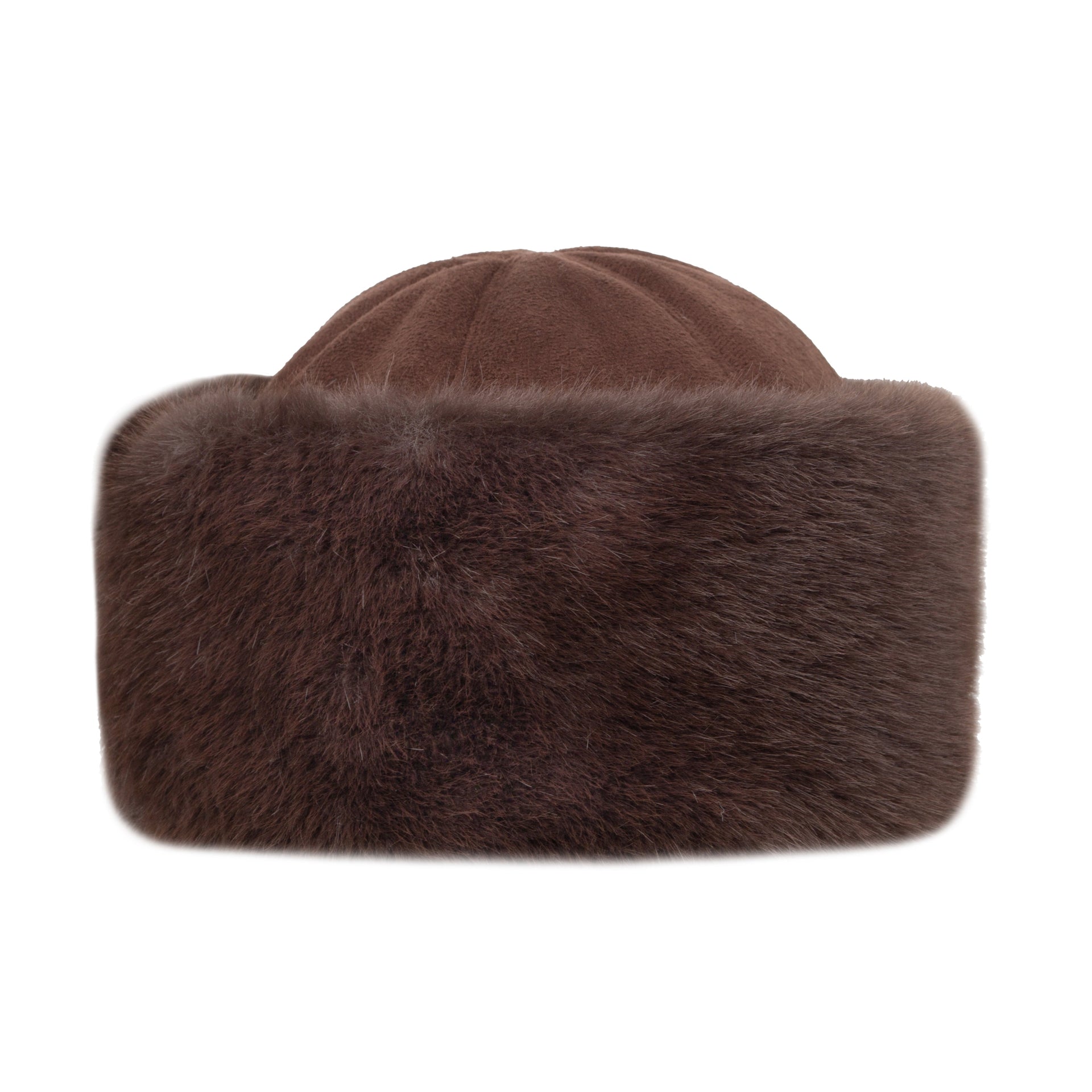 DENTS Women's Faux Suede Hat with Faux Fur Brim - Chocolate